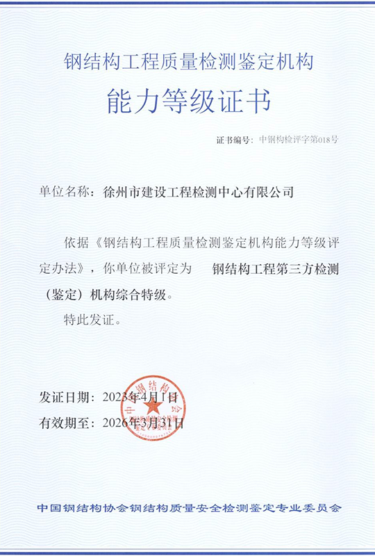 徐州市建設(shè)工程檢測(cè)中心有限公司(以下簡稱徐建檢測(cè)公司)是徐州市產(chǎn)城發(fā)展集團(tuán)有限公司(以下簡稱產(chǎn)城集團(tuán))的全資子公司。徐建檢測(cè)公司前身為徐州市建設(shè)工程檢測(cè)中心,2018年事轉(zhuǎn)企改制,2020年4月,完成轉(zhuǎn)企改制資產(chǎn)劃轉(zhuǎn)工作。 徐建檢測(cè)公司是集檢測(cè)、檢驗(yàn)、鑒定、咨詢等技術(shù)服務(wù)為一體、具有獨(dú)立法人資質(zhì)的綜合性第三方服務(wù)機(jī)構(gòu)。公司主要從事建設(shè)工程領(lǐng)域相關(guān)工程質(zhì)量檢測(cè)及技術(shù)咨詢服務(wù),業(yè)務(wù)覆蓋地基基礎(chǔ)、建筑材料、建筑結(jié)構(gòu)、鋼結(jié)構(gòu)工程、市政工程、綠色建筑節(jié)能工程、建筑安全與施工設(shè)備、建筑防水、建筑水電、裝飾裝修、建筑物防雷、室內(nèi)環(huán)境、房屋安全鑒定、城市軌道交通工程等專業(yè)領(lǐng)域。......